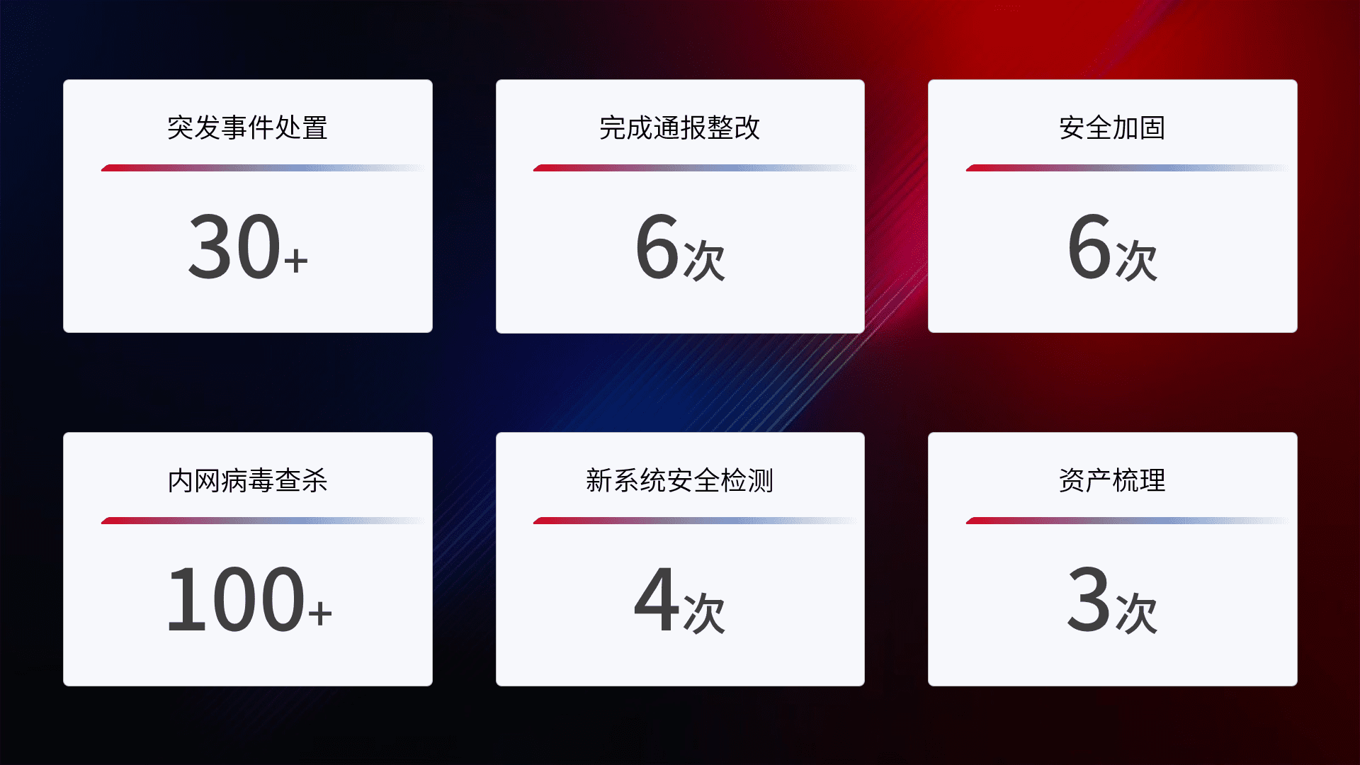 安全水平提升与事件响应:派驻经验丰富的安全工程师,,,提升医院网络安全防护的整体水平;建立突发网络安全事件的处置流程,,,提高响应速度和处置能力。。。。